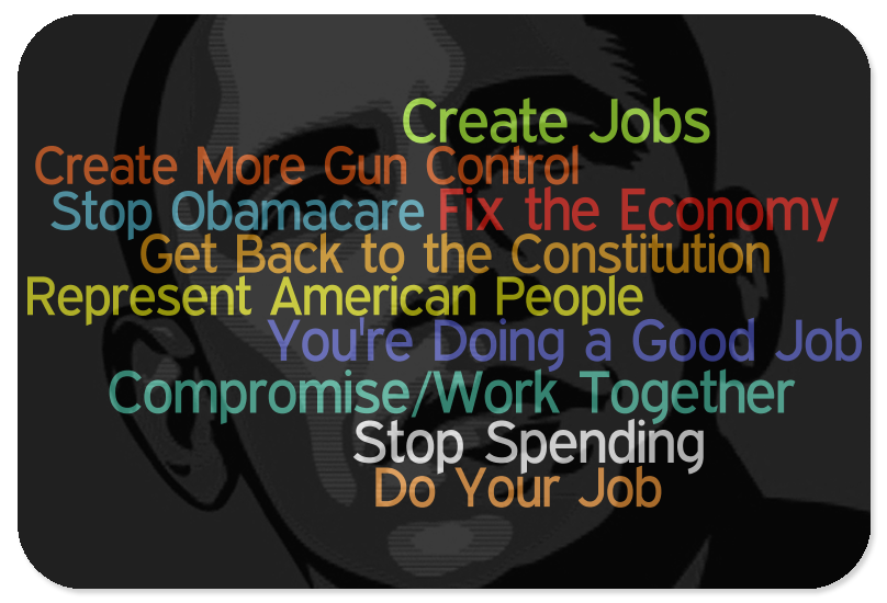 While Obama has his own plan for the next four years, recent data from NBC/Wall Street Journal asked Americans to ponder the one thing they would tell President Obama as he “begins his second term.” Here are the top ten things they said:
