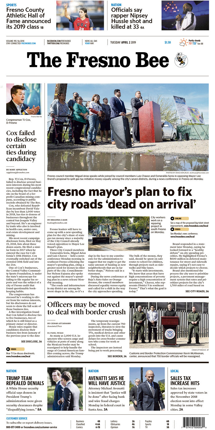 In case you missed it, TJ Cox made the front page of the Fresno Bee again this morning!
