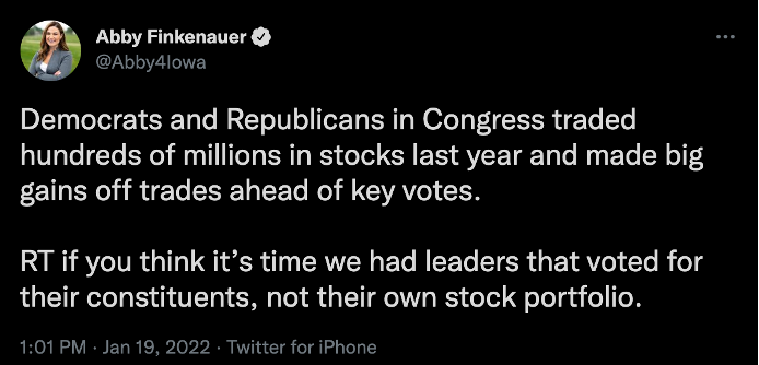 Abby Finkenauer is coming out hard against members of Congress who profit from trading stocks.