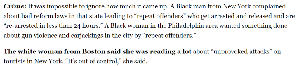 Politico Playbook sat in on focus groups of Democrat voters, and crime is at the forefront of voters’ minds: