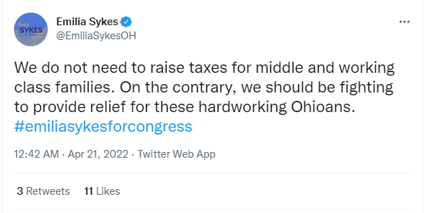 OH-13 Democratic candidate Emilia Sykes tweeted today that “we do not need to raise taxes…”