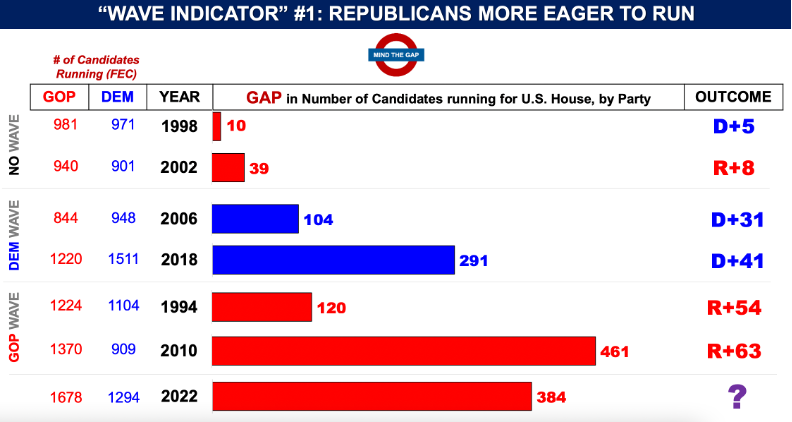 According to a new analysis from lobbyist Bruce Mehlman, superior recruitment typically results in a wave election. And House Republicans have drastically out-recruited House Democrats this cycle