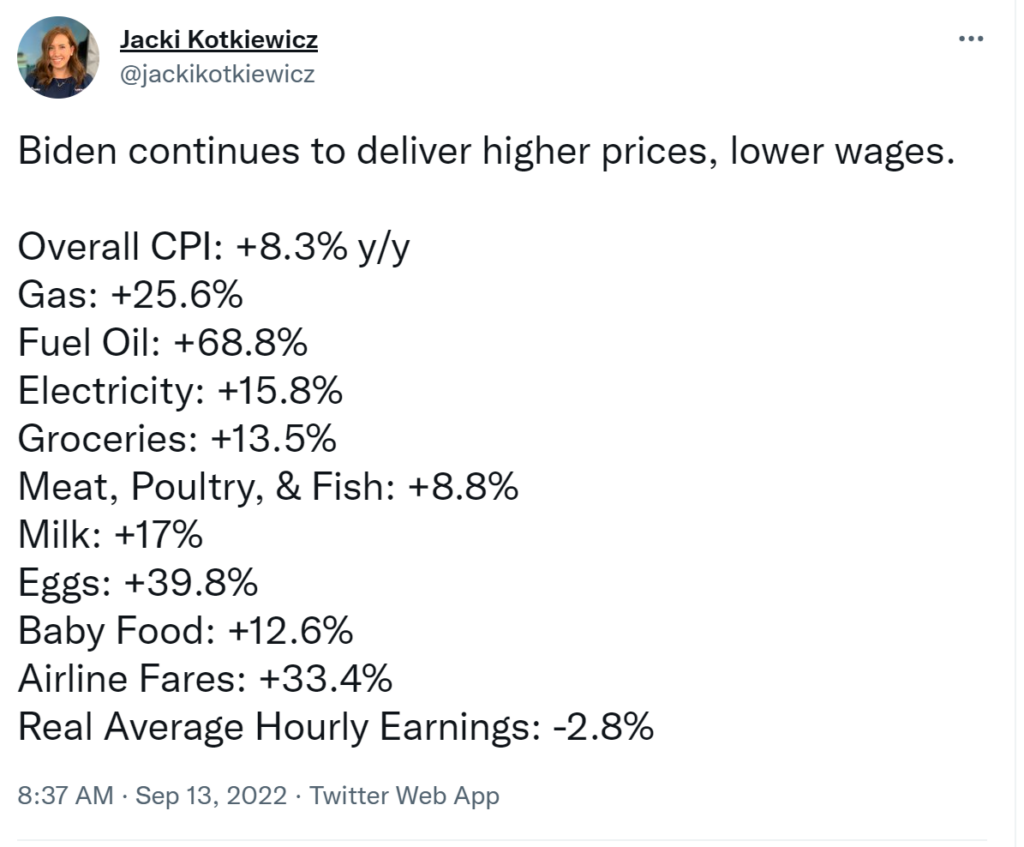CNBC reports “Inflation rose more than expected in August as rising shelter and food costs offset a drop in gas prices, the Bureau of Labor Statistics reported Tuesday.”
