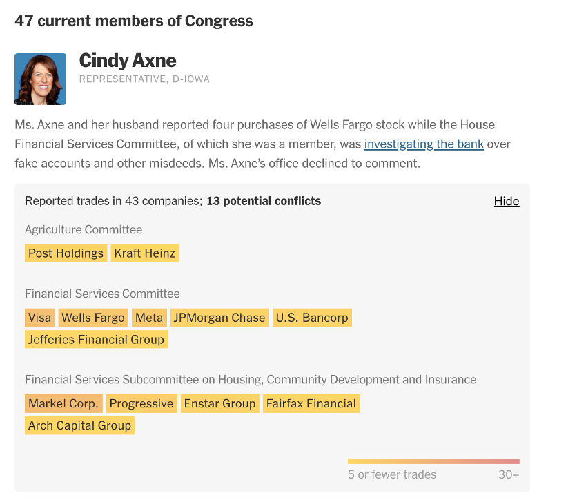 A bombshell report in the New York Times reveals Cindy Axne was actively trading stocks in a company she was supposed to be investigating.