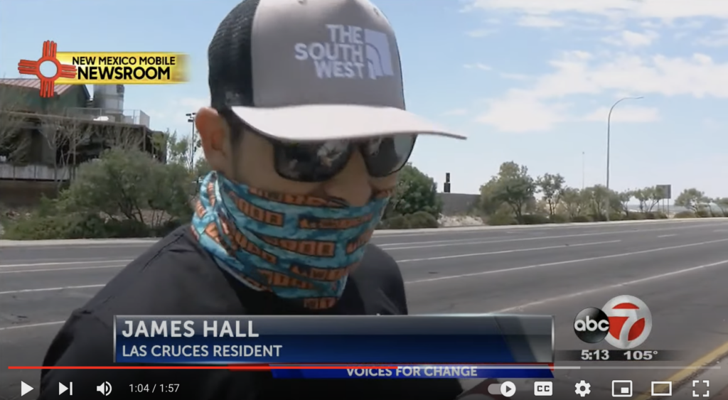 That’s because the interviewee was, in fact, Vasquez, a former city official who monitored the protest told the Free Beacon. Contemporaneous evidence reviewed by the Free Beacon, meanwhile, supports the assertion. Vasquez tweeted live from the event on June 6, 2020, sharing first-person photos accompanied with the hashtags “BlackLivesMattters [sic]” and “Las Cruces.” Six months later, Vasquez shared a photo that showed him sporting the same distinct, teal-and-orange neck gaiter he wore in the interview. That gaiter, the Free Beacon found, is sold by a small New Mexico-based fly fishing business, Where the River Runs. Vasquez is a self-described “avid angler,” and in 2018, the Democrat interviewed Where the River Runs founder Gregg Flores on his “conservation podcast,” during which Vasquez described a “really cool adventure” he had with Flores through a “project” the pair collaborated on. Vasquez is also a frequent commenter on the company’s Facebook page.