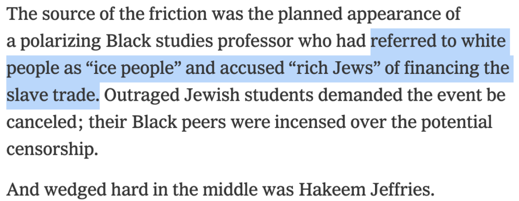 The New York Times is out with a profile on Hakeem Jeffries detailing how he encouraged his anti-Semitic uncle to be allowed to speak at his college.