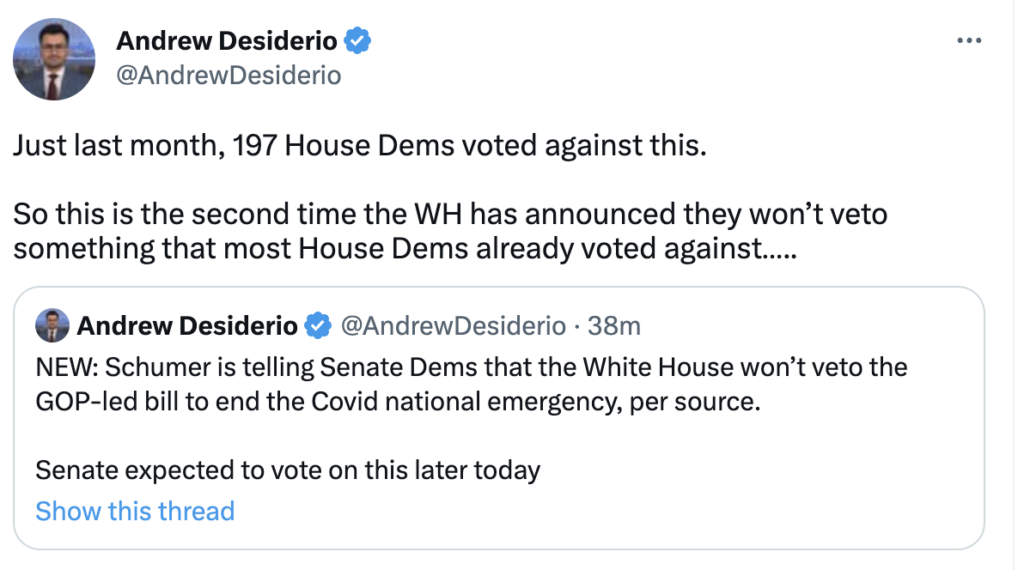 Too extreme for Biden. Not extreme enough for 197 House Democrats. According to reports: