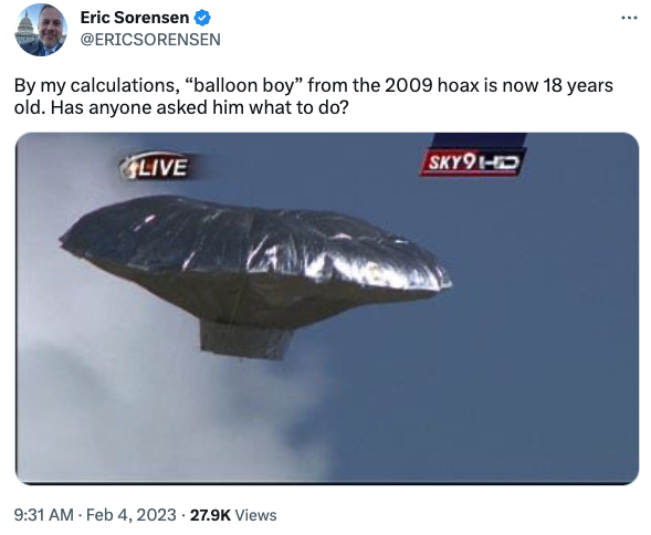 Back in February, non-serious Congressman Eric Sorensen was cracking jokes about the Chinese spy balloon that Joe Biden let traverse the continental U.S.