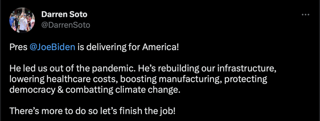 “The Biden presidency has been an abject disaster. Joe Biden and his Democrat friends like Darren Soto do not represent Florida values.” – NRCC Spokeswoman Delanie Bomar