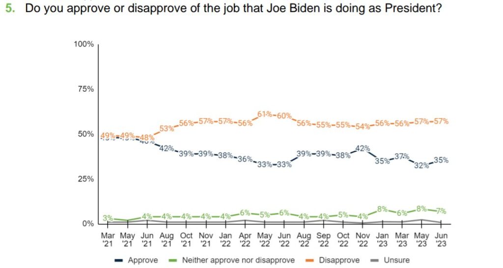 It’s a tough day to be a Biden Democrat in North Carolina. The latest poll shows Joe Biden at an abysmal 35% approval rating in North Carolina