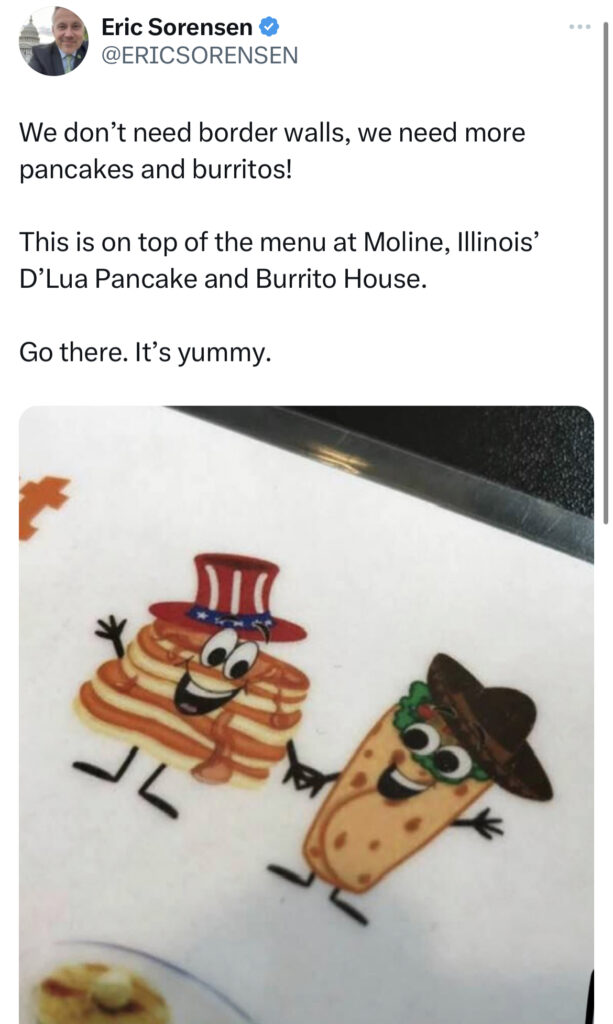 In an interview with WREX yesterday, Eric Sorensen claimed “There is no doubt that we need to secure our Southern border.”