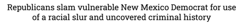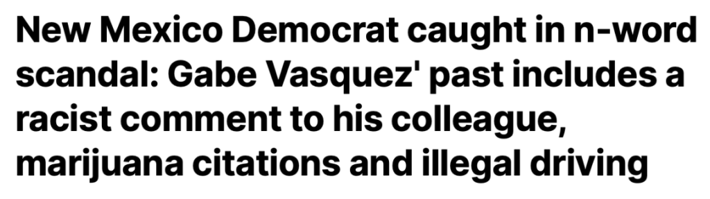 The past few weeks have been full of bad news for vulnerable Gabe Vasquez. Turns out, New Mexicans don’t want a representative with an arrest warrant who uses the n-word to harass his colleagues!