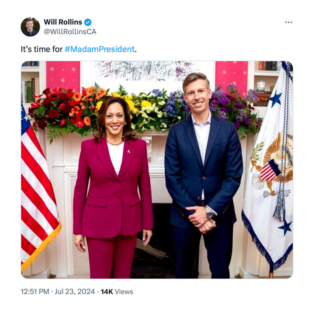 Extreme California Democrats, including Will Rollins, are caving to endorse the most radical liberal presidential nominee in history, Kamala Harris.