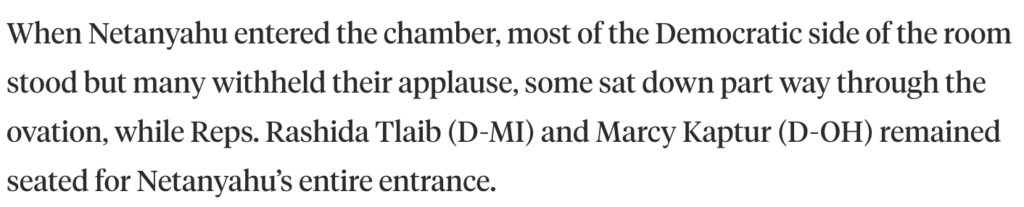 Yesterday, when Israeli Prime Minister Benjamin Netanyahu entered the House chamber to deliver his remarks to Congress, extreme Democrat Marcy Kaptur remained seated right next to rabid antisemite Rashida Tlaib.
