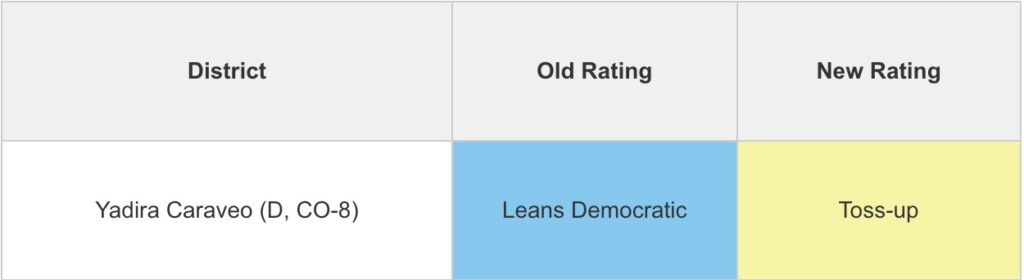 A new Sabato’s Crystal Ball race ranking presents great news for Gabe Evans in CO-08 as the district shifts toward Republicans and into the “Toss-up” category: