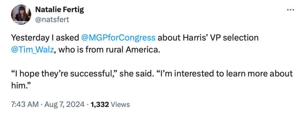 Marie Gluesenkamp Perez backs Harris-Walz for president: “I hope they’re successful”