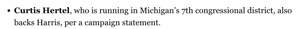 BREAKING: Curtis Hertel bends the knee to endorse Kamala Harris