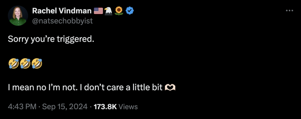 “Instead of hiding, Eugene Vindman must condemn this inflammatory rhetoric immediately. His silence can only be taken as agreement with Rachel Vindman’s rhetoric.” — NRCC Spokeswoman Delanie Bomar