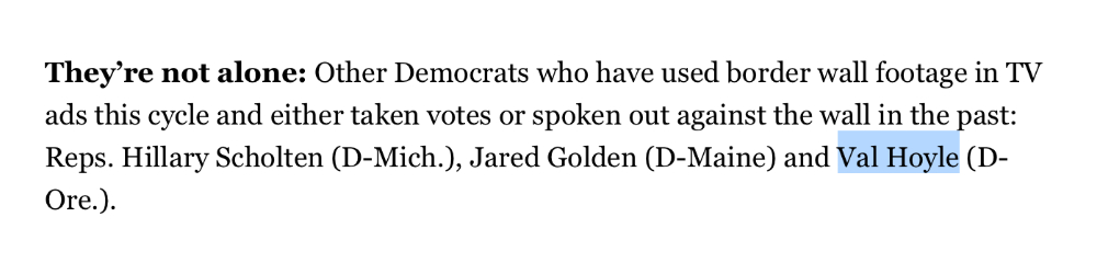 “Val Hoyle opened the border and caused the border crisis, but now she’s trying to save face and run away from her record. Republicans aren’t going to let her get away with this and every day voters are going to be reminded Hoyle is responsible for this crisis.” – NRCC Spokesperson Ben Petersen