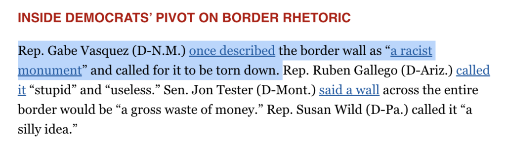 ❌ Said the border wall was built by a “crooked, racist administration.”