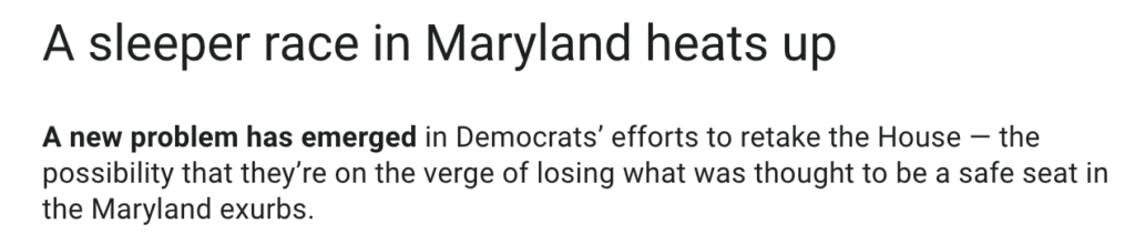 In case you missed it… Democrats are freaking out about the direction Maryland’s 6th congressional district is heading.