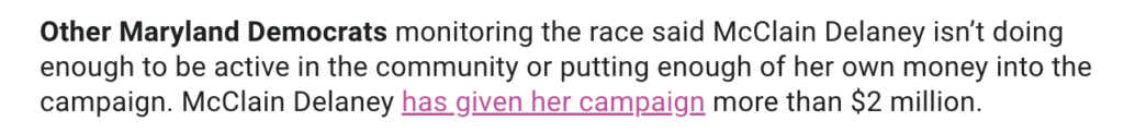 Democrats are eating their own and throwing April McClain Delaney under the bus for failing to keep this as a safe seat: