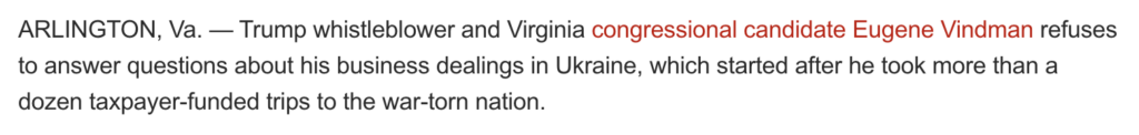 “This is why Virginians can’t trust Yevgeny Vindman: He’s not transparent with voters. Vindman should tell voters how he makes money and let voters decide whether making money off the war in Ukraine is the type of person they want in office.” — NRCC Spokeswoman Delanie Bomar