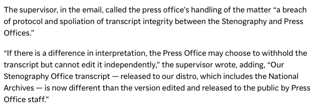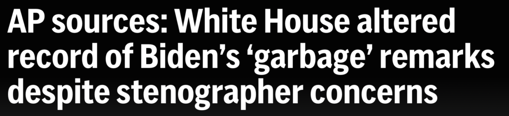 First, Biden called Trump supporters “garbage.” Then, he ordered White House staff to edit his official transcript of the remark, enraging official White House stenographers.