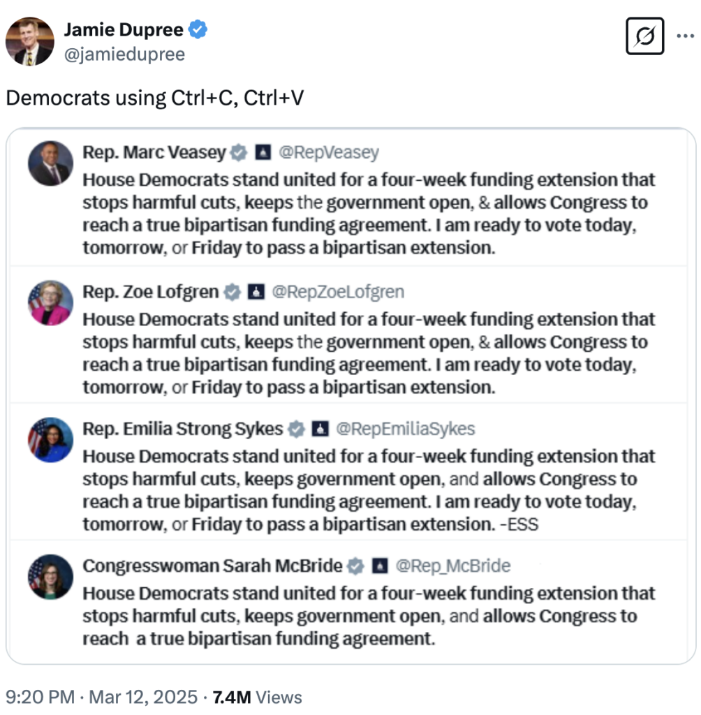 Their solution? Regurgitate political talking points like robots. This must be the Democrats’ new “rapid response task force” hard at work