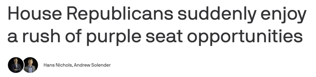 “House Democrats aren’t just fighting amongst themselves, they’re fighting an uphill battle for the majority while watching their own ranks thin out as ambition takes priority over party survival.” — NRCC Spokesman Mike Marinella