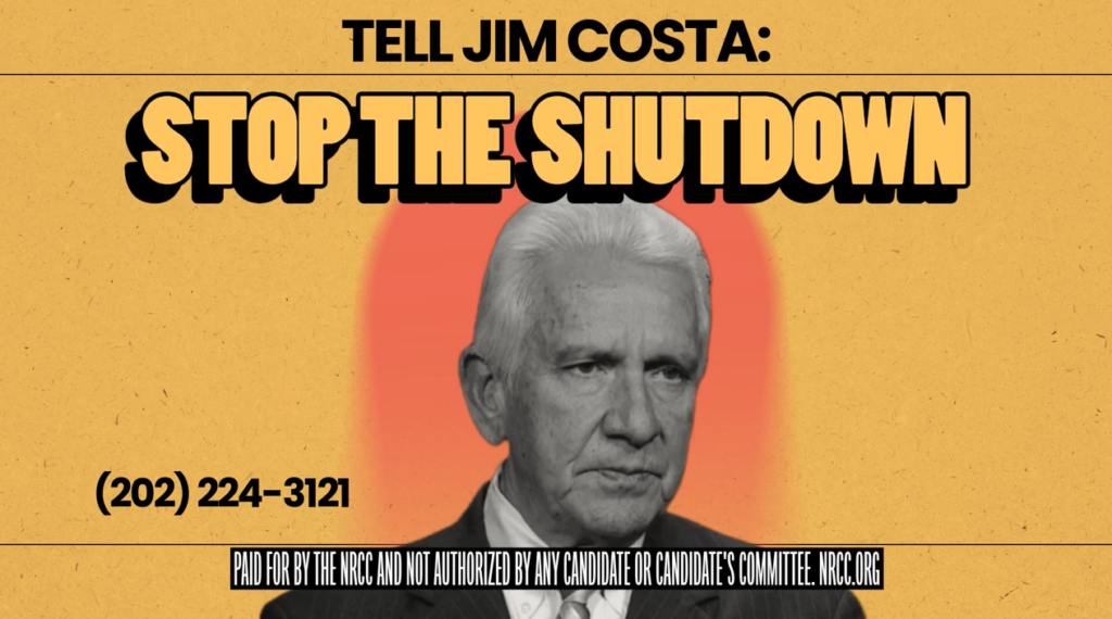 “Out-of-touch Jim Costa proved he doesn’t care about his constituents—voting to shut down the government. Californians deserve a leader who fights for them, not a self-serving politician more focused on stunts than solutions.” – NRCC Spokesman Christian Martinez