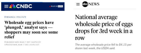 If Riley had been doing his job and paying attention, he’d know that the price of eggs actually hit a nearly five-month low this week.