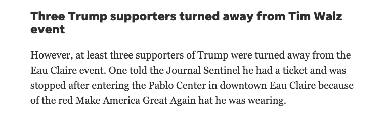 At yesterday’s “town hall” hosted by certified loser Tim Walz in Eau Claire, Wisconsinites were denied entry just because they support President Trump.