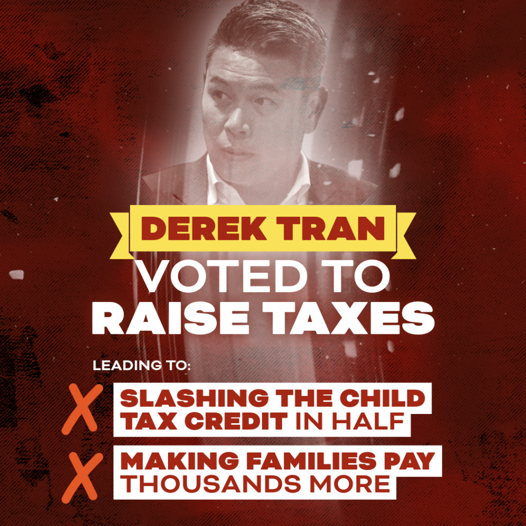WASHINGTON, D.C. — The National Republican Congressional Committee (NRCC) launched a paid digital advertising campaign targeting Derek Tran for voting against the budget resolution, leading to higher taxes for Californiansby slashing the child tax credit in half and making families pay thousands more.