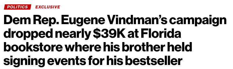 Vindman claimed he spent nearly $39,000 in campaign funds on a “fundraising expense,”but the money went to a Florida bookstore that sells his brother’s book and hosted his book signings