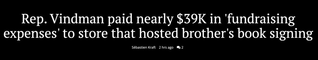 There is no record of a political fundraiser being held at this bookstore in the past 15 years, and Vindman wasn’t even in Florida when the second payment – totaling over $30k – was made. Conveniently, the week after Vindman reported spending nearly $8,000 on his brother’s book, the book was named an “Instant New York Times bestseller.”