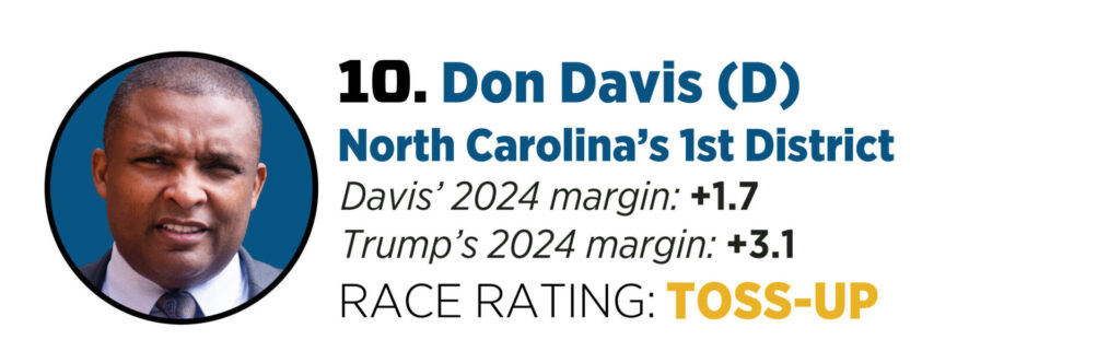 Democrat Don Davis has been identified as the tenth most vulnerable incumbent heading into the 2026 midterm elections.