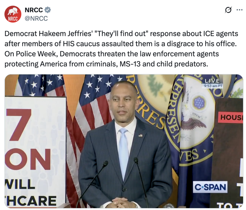 After House Democrats assaulted ICE officers, minority “leader” Hakeem Jeffries and AOC are now openly threatening them.