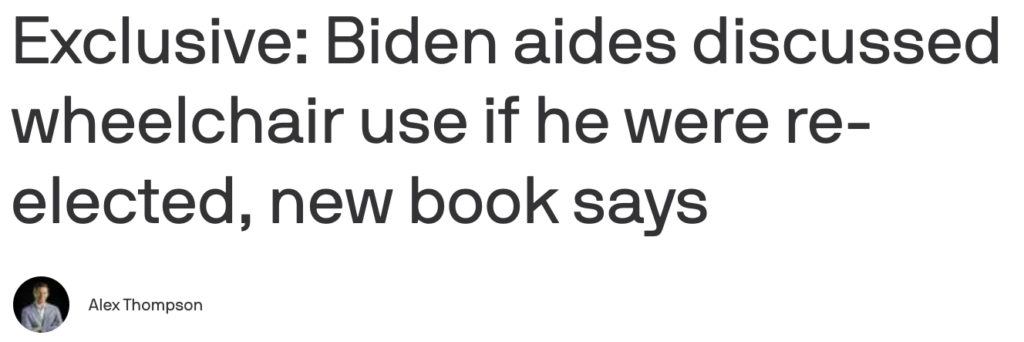 A new bombshell report shows Joe Biden’s physical decline was so severe that advisers privately discussed the possibility he’d need to use a wheelchair if he won reelection.
