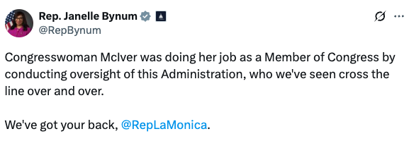 “If weaponizing power, interfering with federal agents, and assaulting law enforcement is what Democrat Janelle Bynum calls a job description, it’s no wonder her priorities are so dangerously out of touch with Oregonians.” – NRCC Spokesman Christian Martinez