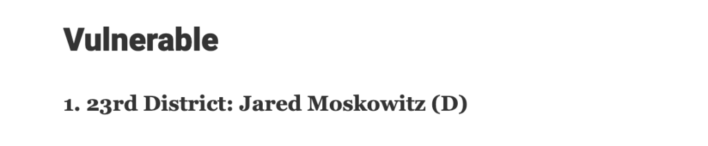 Least effective Florida Democrat Jared Moskowitz has earned another illustrious title – Florida’s most vulnerable House Member.