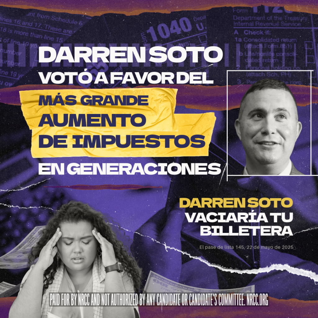 WASHINGTON, D.C. — The National Republican Congressional Committee (NRCC) launched a paid Spanish advertising campaign targeting vulnerable Democrat Darren Soto for voting against the “One Big Beautiful Bill Act,” and for the largest U.S. tax hike in generations.