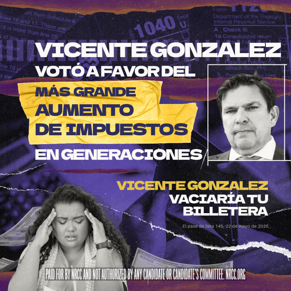 WASHINGTON, D.C. — The National Republican Congressional Committee (NRCC) launched a paid Spanish advertising campaign targeting vulnerable Democrat Vicente Gonzalez for voting against the “One Big Beautiful Bill Act,” and for the largest U.S. tax hike in generations.