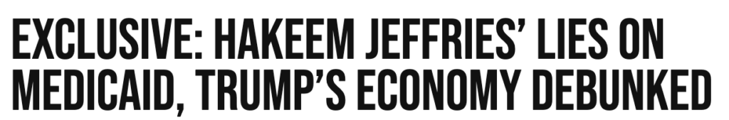 “Hakeem Jeffries sits on a throne of lies. The truth is, the economy is booming under President Trump and Republicans while House Democrats have no message beyond pathetic fear-mongering and distractions from their failures.” — NRCC Spokesman Mike Marinella