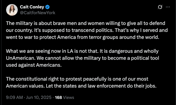 “Democrats Cait Conley and Mike Sacks’ party is the party of lawlessness. Their leaders are spoiled elitists, their grassroots are violent anarchists, and Conley and Sacks are committed to advancing this radical agenda.” – NRCC Spokeswoman Maureen O’Toole