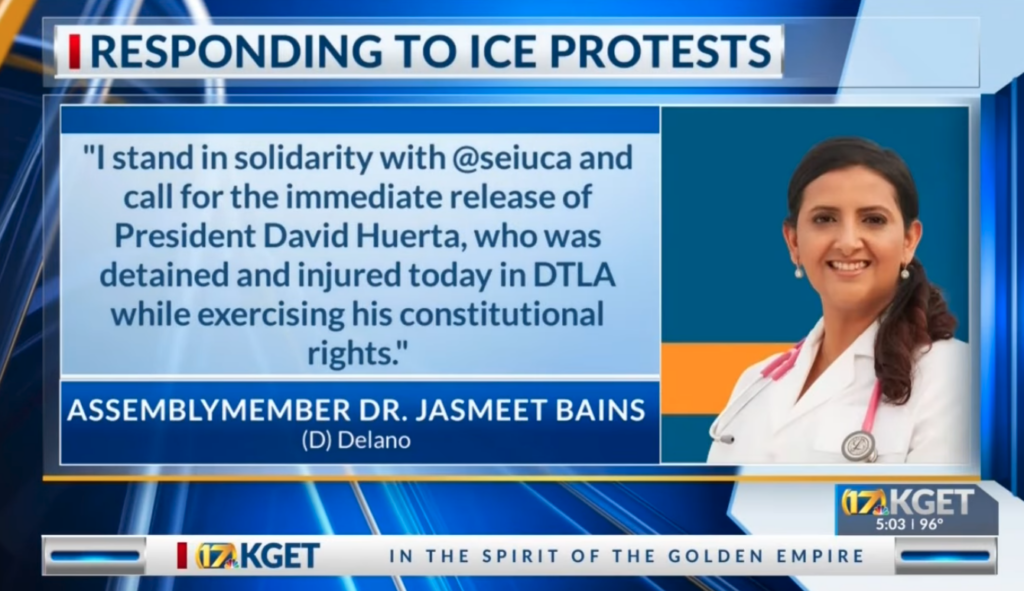 Democrat Jasmeet Bains has yet to denounce the Los Angeles riots where illegal immigrants have lead violent riots, torched property, block roads, and endanger Californians for the past four days. Instead she ran to defend a far left progressive group leader, who was arrested on Friday trying to impede law enforcement agents from doing their jobs and keep Californians safe.