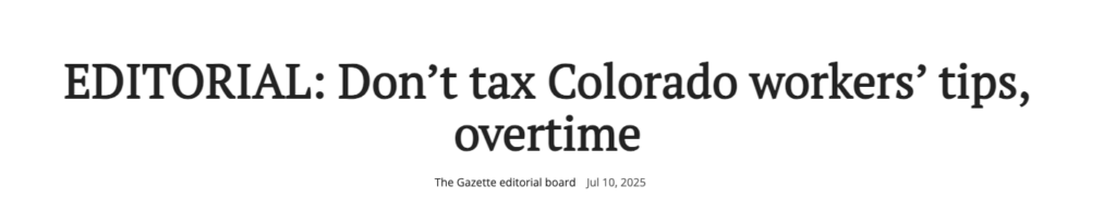 “In Colorado, our industrial employees, first responders, and health care professionals often work overtime to serve the public and make ends meet for their families,” the group said in a news release. “Waitresses, hairdressers, delivery drivers, and other manual laborers count on tips to barely afford life in our state.”