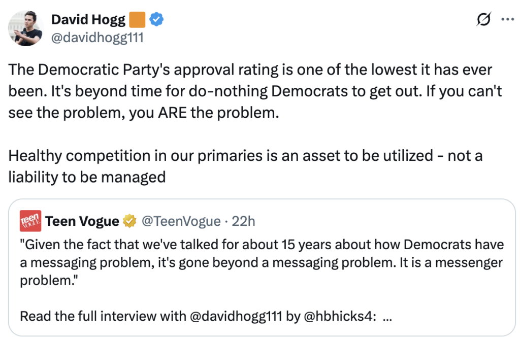 In a scorched-earth rant, Hogg torched Democrat leadership, torpedoed their messaging, and called for primary challenges against their own members.
