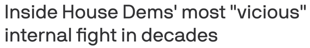 “Democrats are engaged in a battle between the socialists and the party dinosaurs, and it’s only getting uglier.” — NRCC Spokesman Mike Marinella