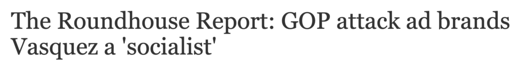 The Roundhouse Report: GOP attack ad brands Vasquez a ‘socialist’